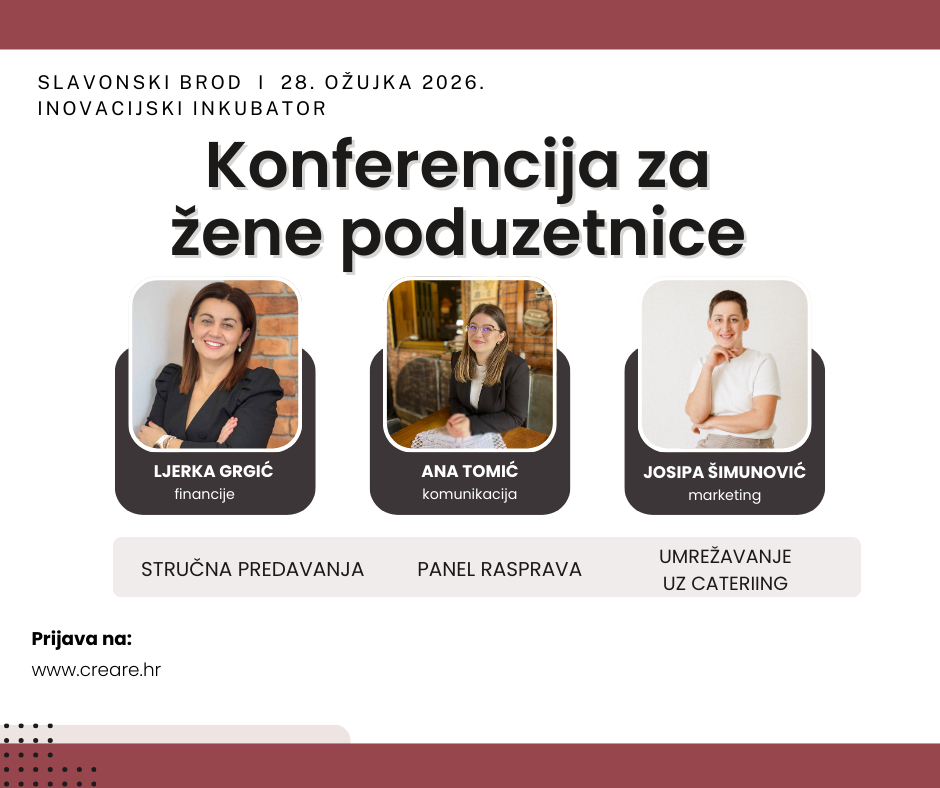 Konferencija za poduzetnice održava se 28. ožujka u Slavonskom Brodu u Inkubatoru InnoBROD i donosi jedinstvenu priliku za povezivanje poduzetnica iz Slavonije i šire.